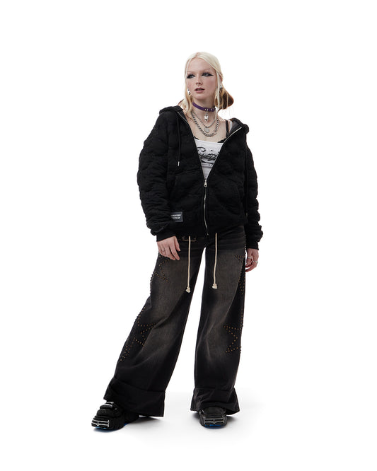 QUILTED ZIP UP HOODIE_BLK