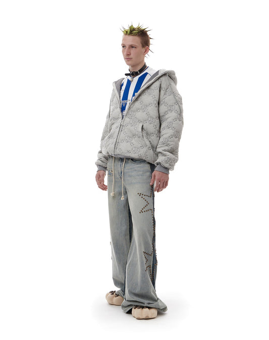 QUILTED ZIP UP HOODIE_GREY